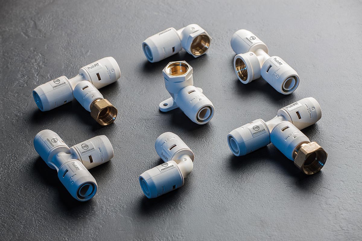 • Compatible con todos los codos base fijación, distribuidores de cocina con placa y con todos sistemas de accesorios para tubería de PRESSMAN: Multipress, EasyFit, PowerFit, Retipress y Pushfit.