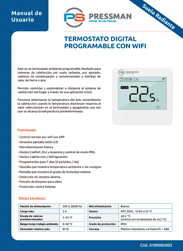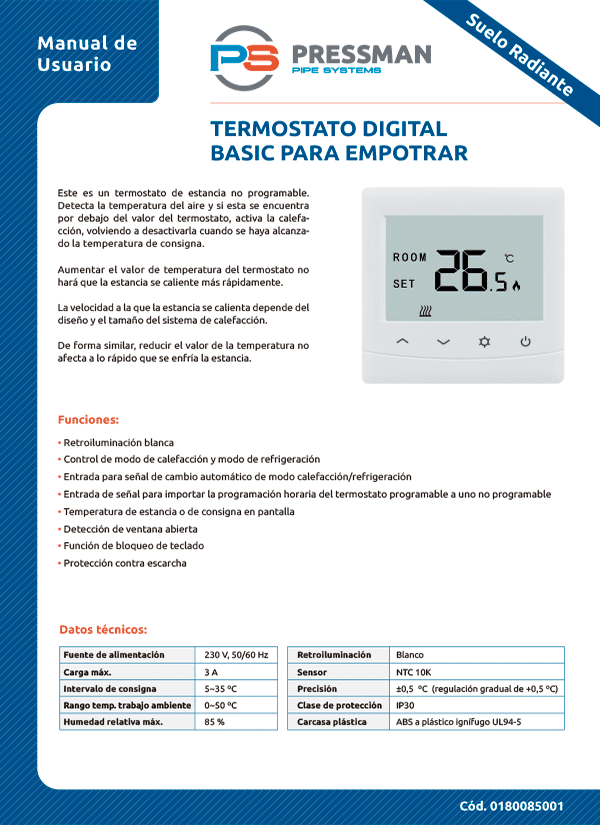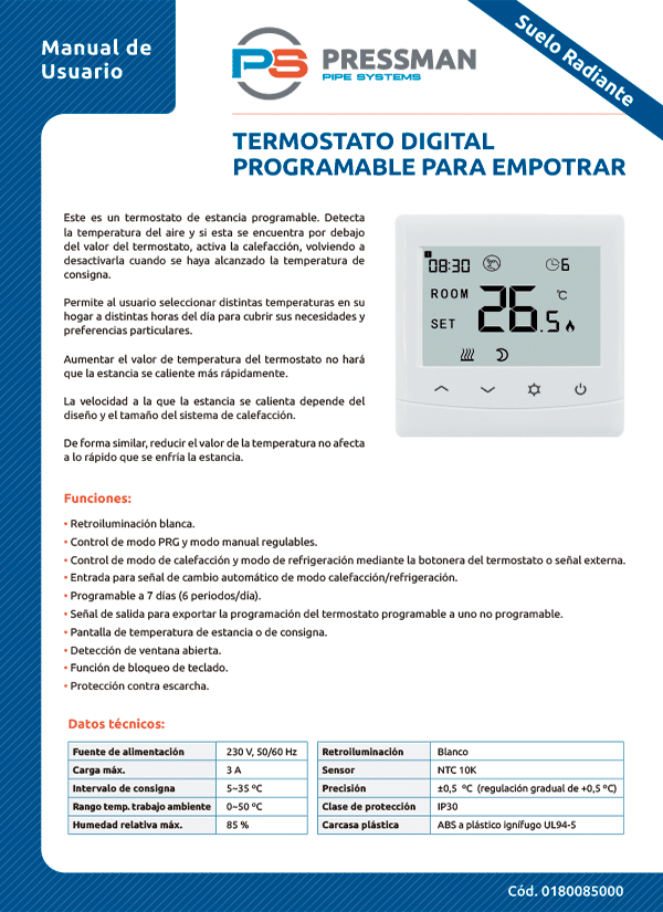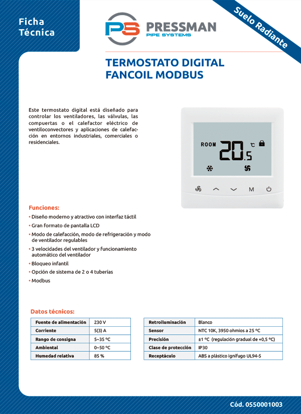 Termostato para aquellas instalaciones de suelo radiante-refrescante en las que se necesite apoyo de FanCoils.
