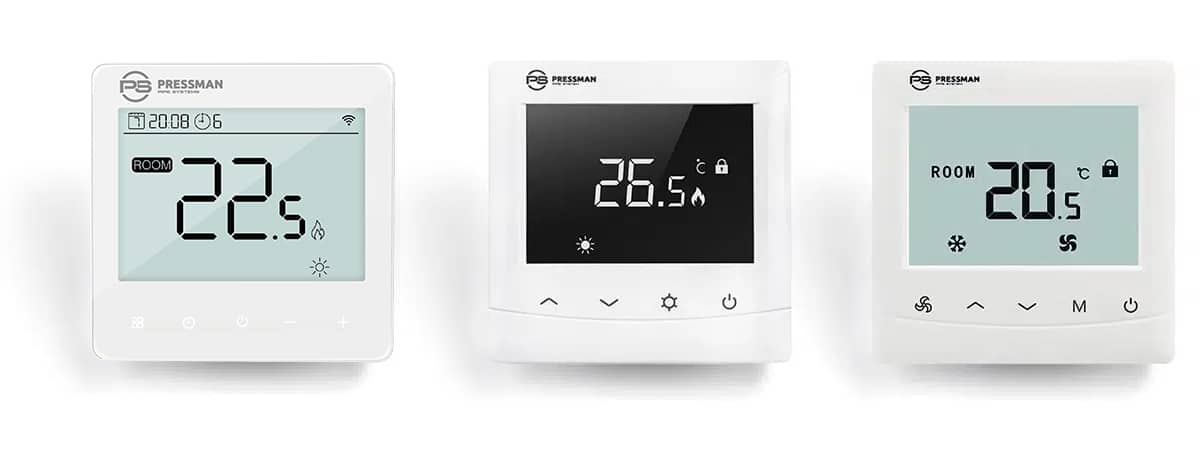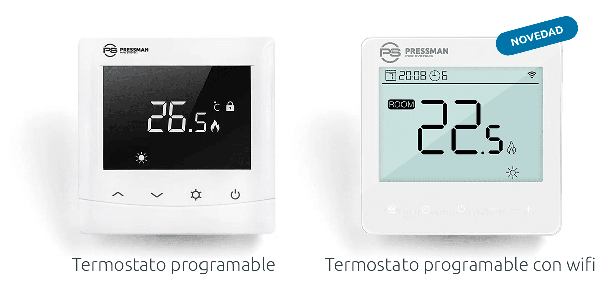 Dos tipos de termostatos para suelo radiante-refrescante: Termostato progamable y termostato programable con wifi.