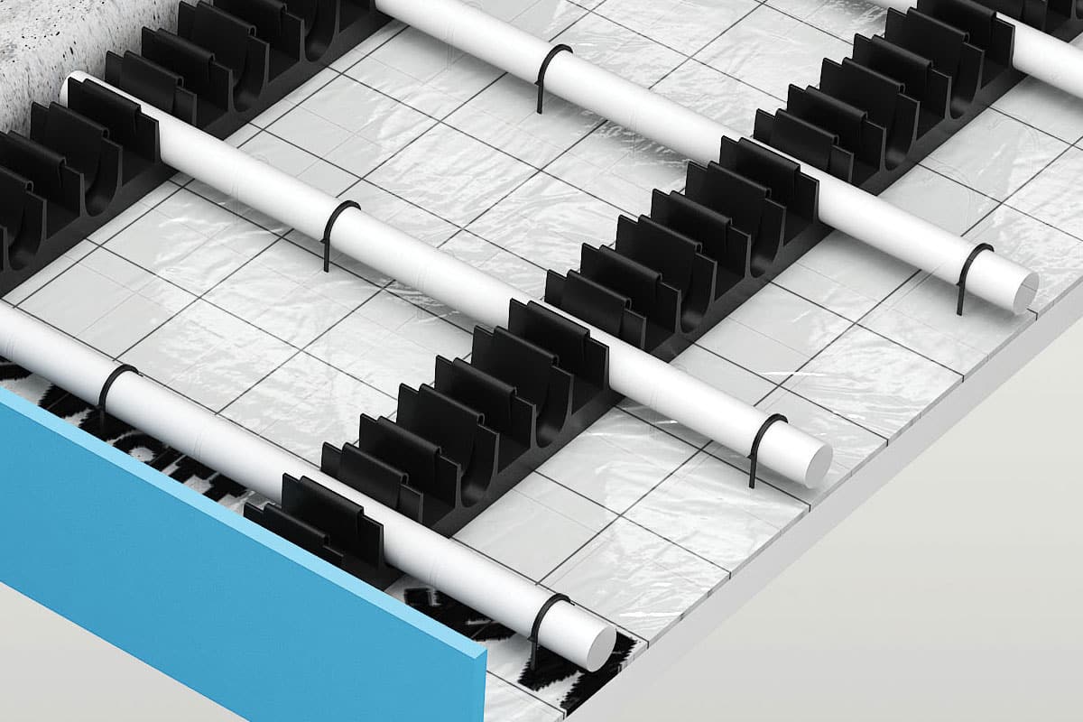 Sistema de fácil instalación basado en placas cubiertas por una lámina superficial de aluminio que aporta mejoras en la difusión del calor. Disponible en placa y rollo.